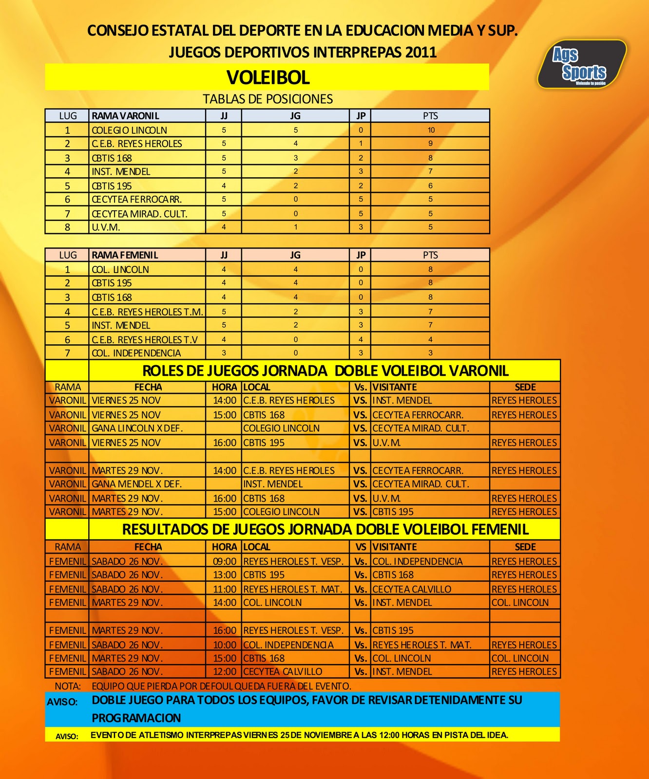ROL DE JUEGOS TORNEO INTER PREPAS VOLEIBOL Y FUTBOL SOCCER
