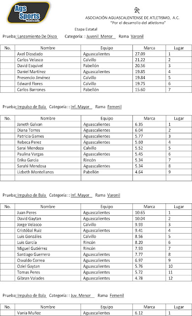 RESULTADOS FINALES DEL CAMPEONATO ESTATAL DE ATLETISMO