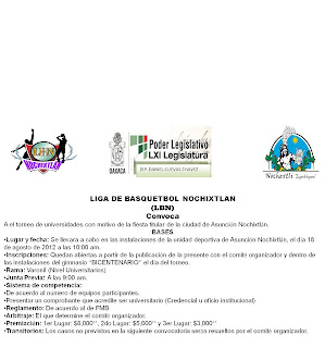 Desde la ciudad de Nochitlán, Oaxaca, invitan a los equipos de Aguascalientes para participar en su torneo de Baloncesto, con motivo de las fiestas patronales de aquel lugar.
