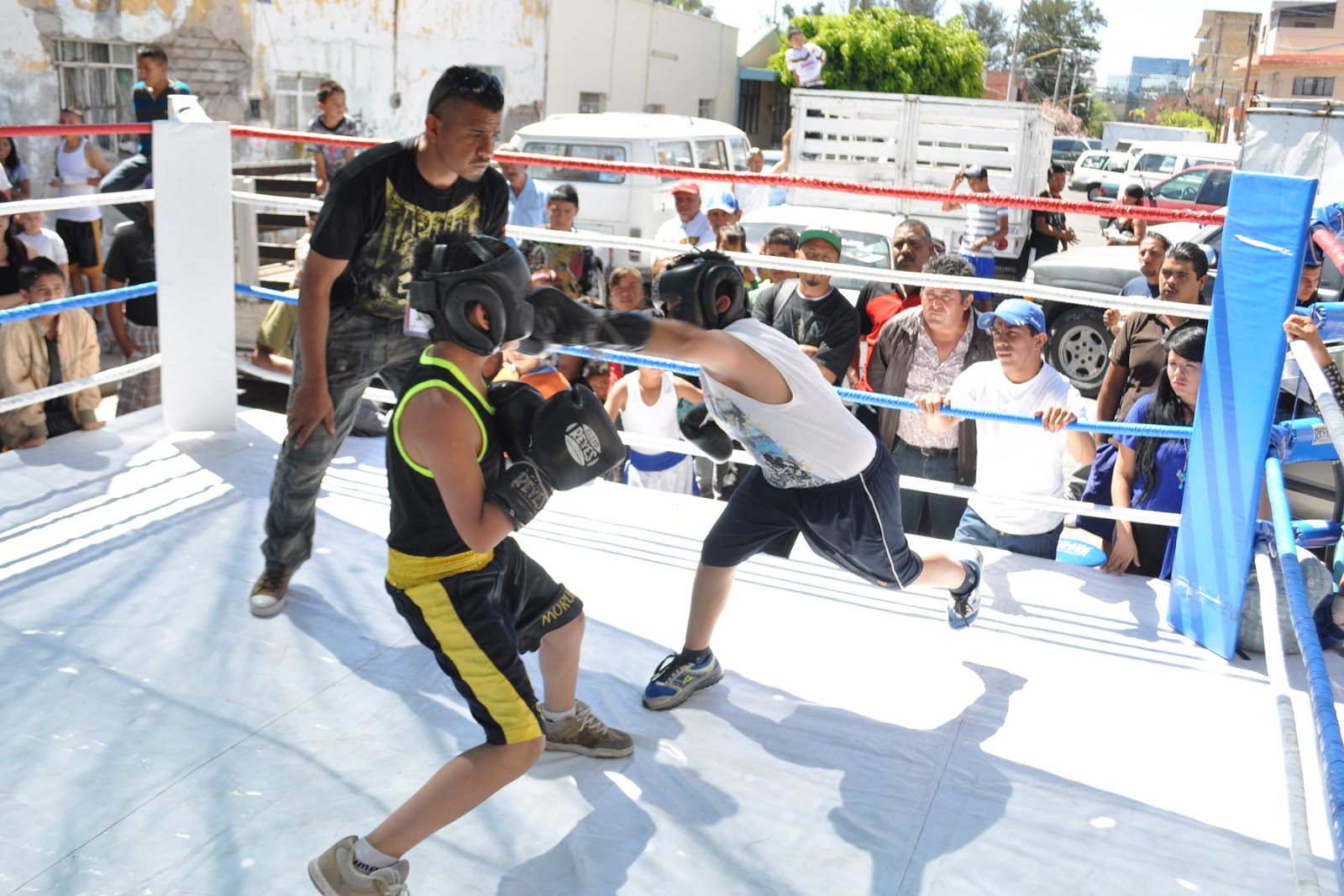 del torneo de box Sangre de mi Barrio al interior del tradicional tianguis