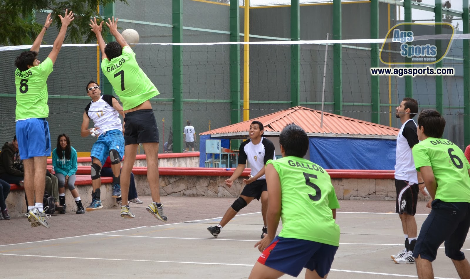 "Jugadoras de Gigantes de Aguascalientes rematando el balón contra el bloqueo de Gigantes de...
