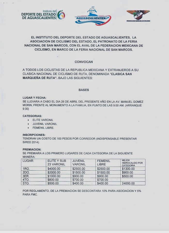 ciclistas locales, el primer lugar ganará $1300.00, el segundo $900.00 y el