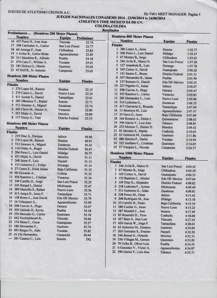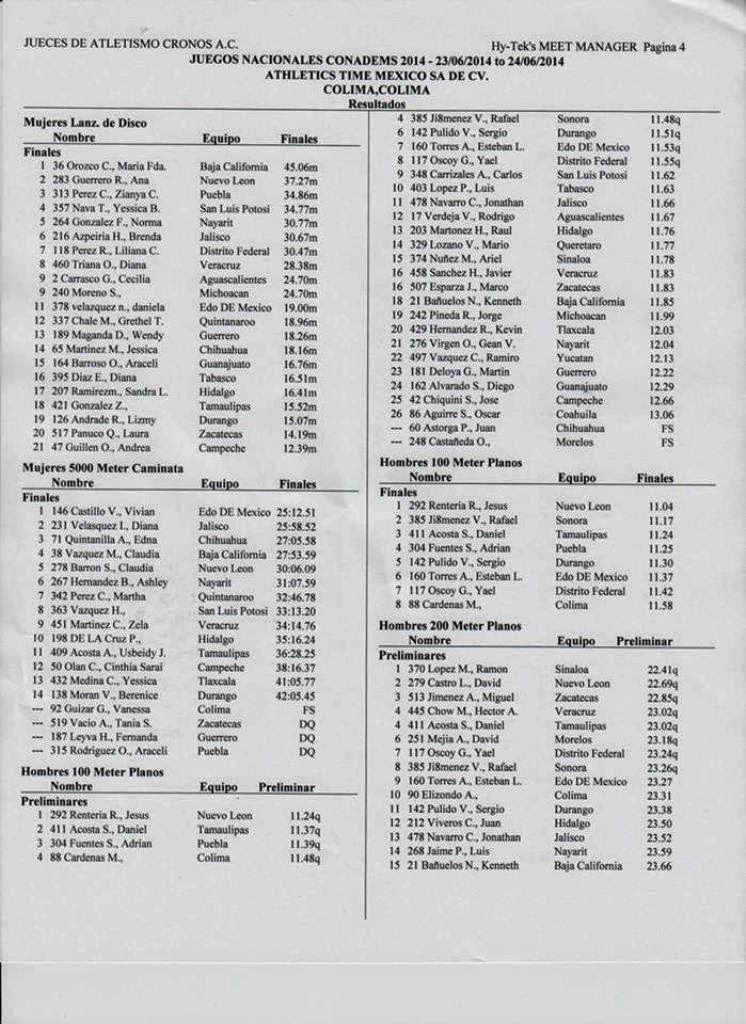 Durango quien llego a la meta en 10.32.73 minutos, mientras que el cuarto