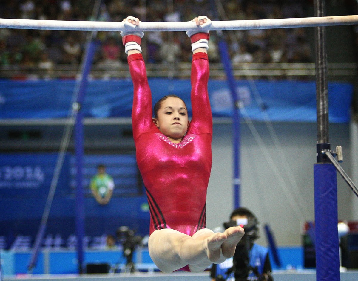 en la prueba de viga de equilibrio en la gimnasia artística de los II Juegos