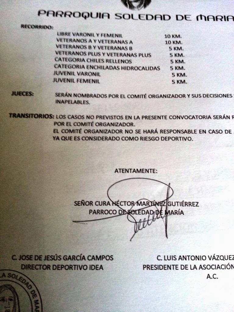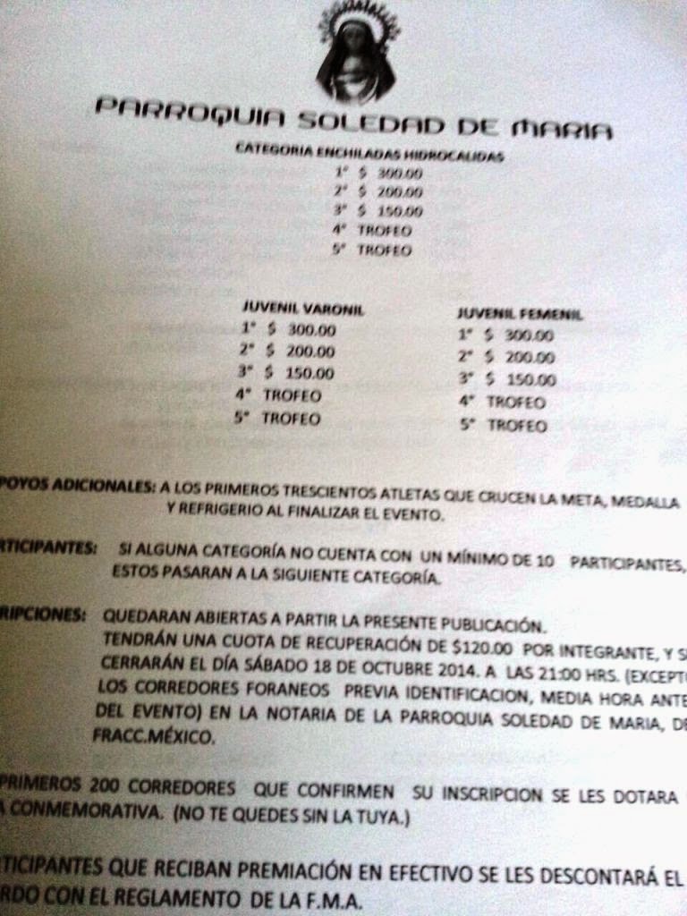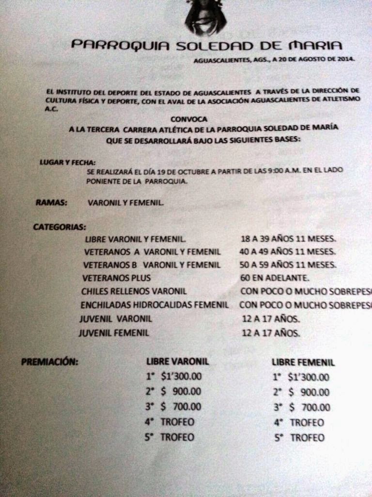 Convocatoria carrera de la Virgen de Soledad de María en Aguascalientes