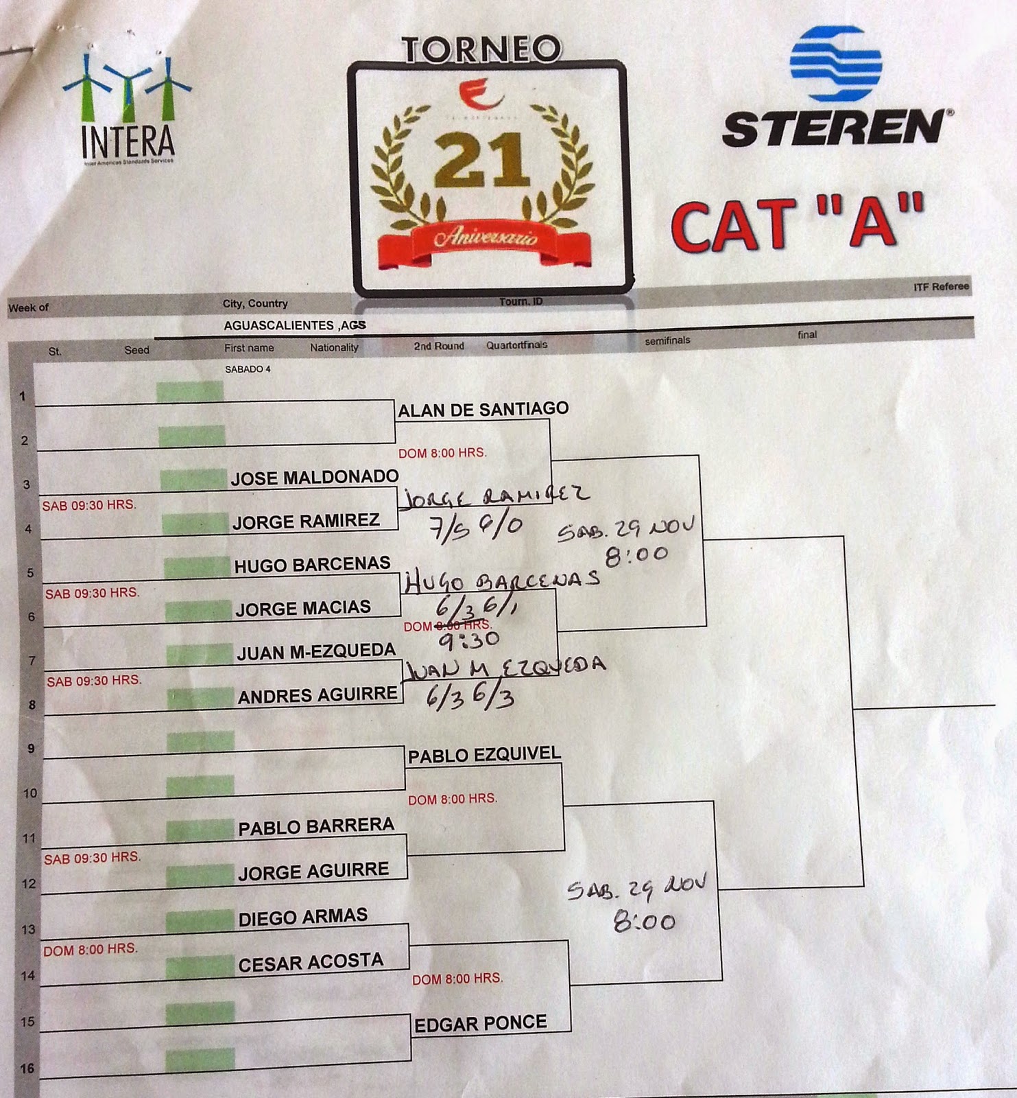 a Enrique Aguilar en dos sets y posteriormente doblego a Jorge Cortes en dos parciales de 7-5 y 6-1, mientras que