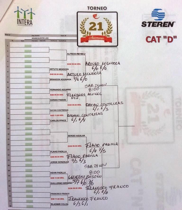 fue la D, donde Arturo Mendoza doblego a Alfredo Reyes Junior en dos sets de