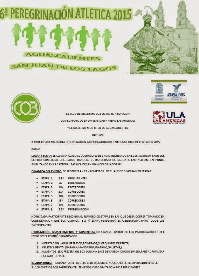 peregrinación de atletas que lleva a cabo el club CO3, desde Aguascalientes y