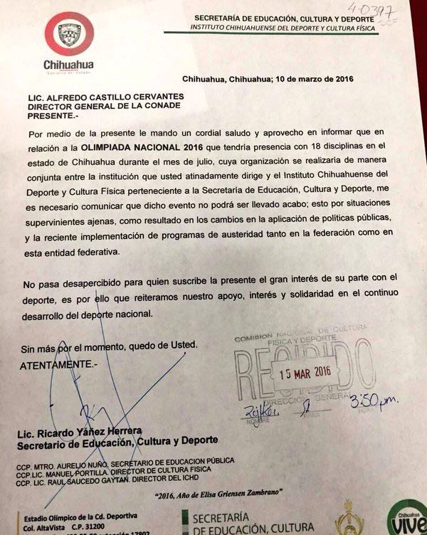 que la declinación de Chihuahua, para llevar a cabo la Olimpiada