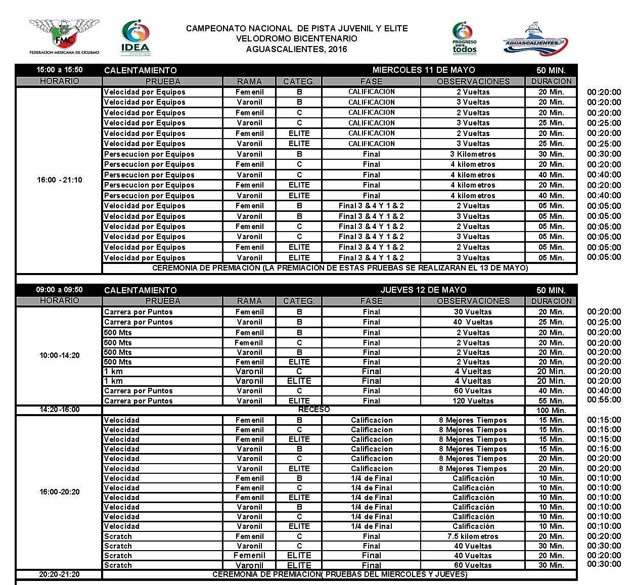 Para el jueves 12 de mayo, las competencias, arrancarán a