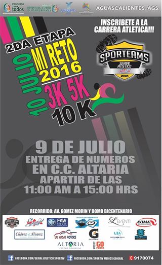 julio, en Aguascalientes, con distancias de 3, 5 y 10 kilómetros.