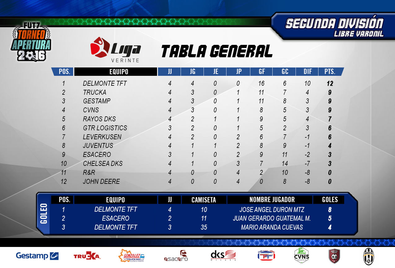 Jose Ángel Duron como líder de goleo con 8 tantos, le sigue en la segunda