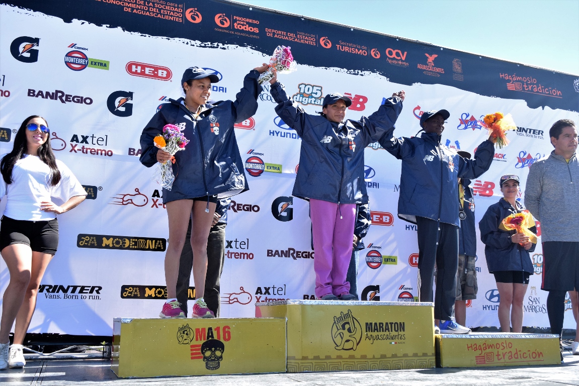 Dismas Ondimo y María Angélica Hernández, ganadores del Maratón Aguascalientes