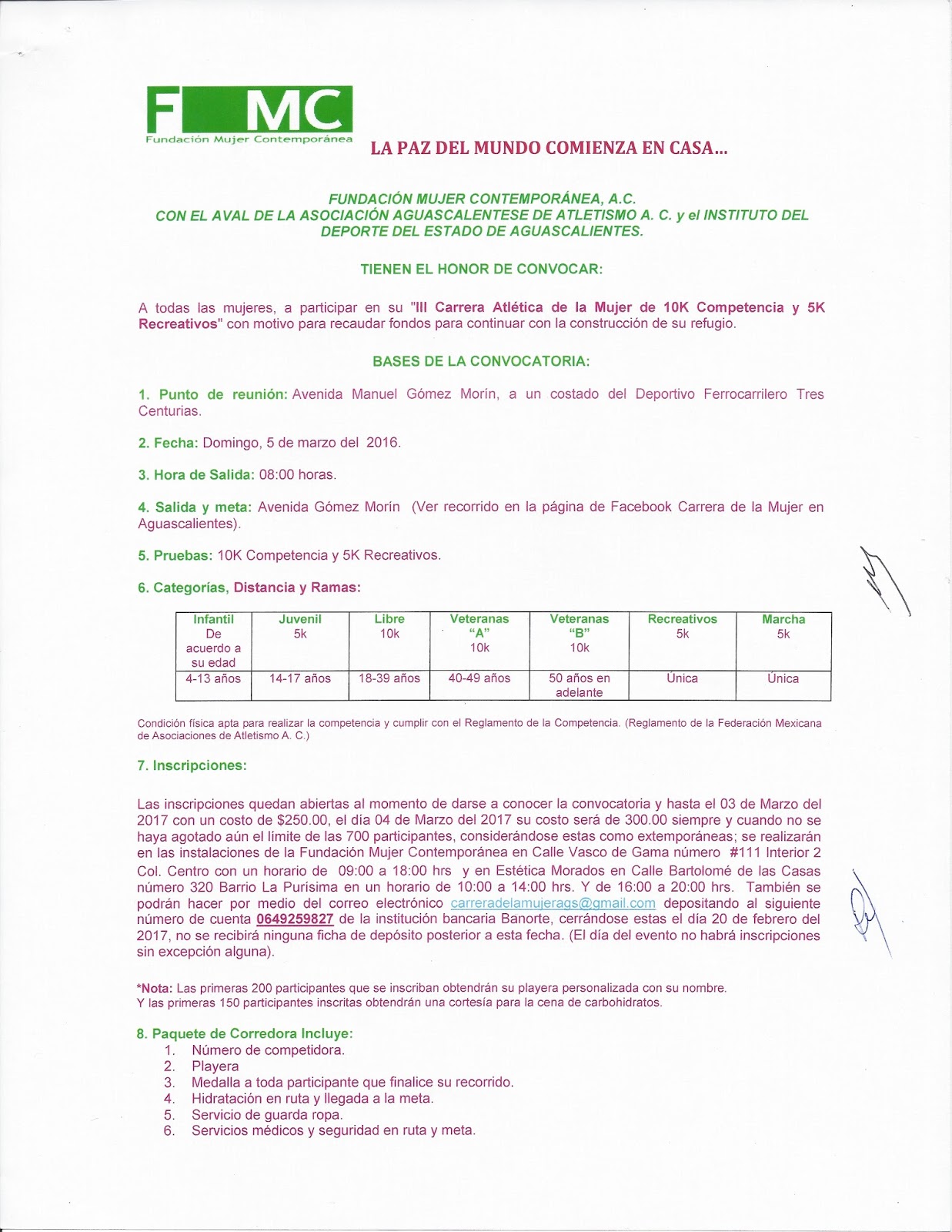 carrera será exclusiva para mujeres en las categorías infantiles de 4 a 13