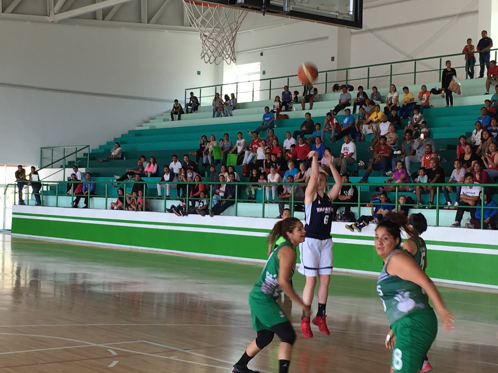 Rodríguez, quien tendría algunos minutos en la duela, apoyando a sus compañeras