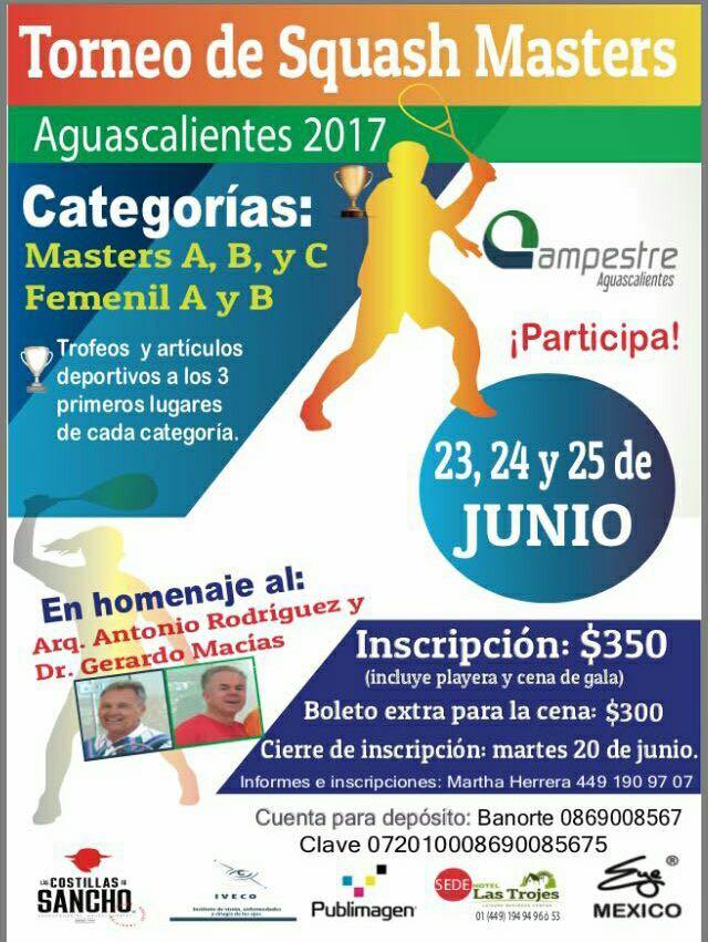 comisión de squash de Aguascalientes, mencionando que además se tendrá una