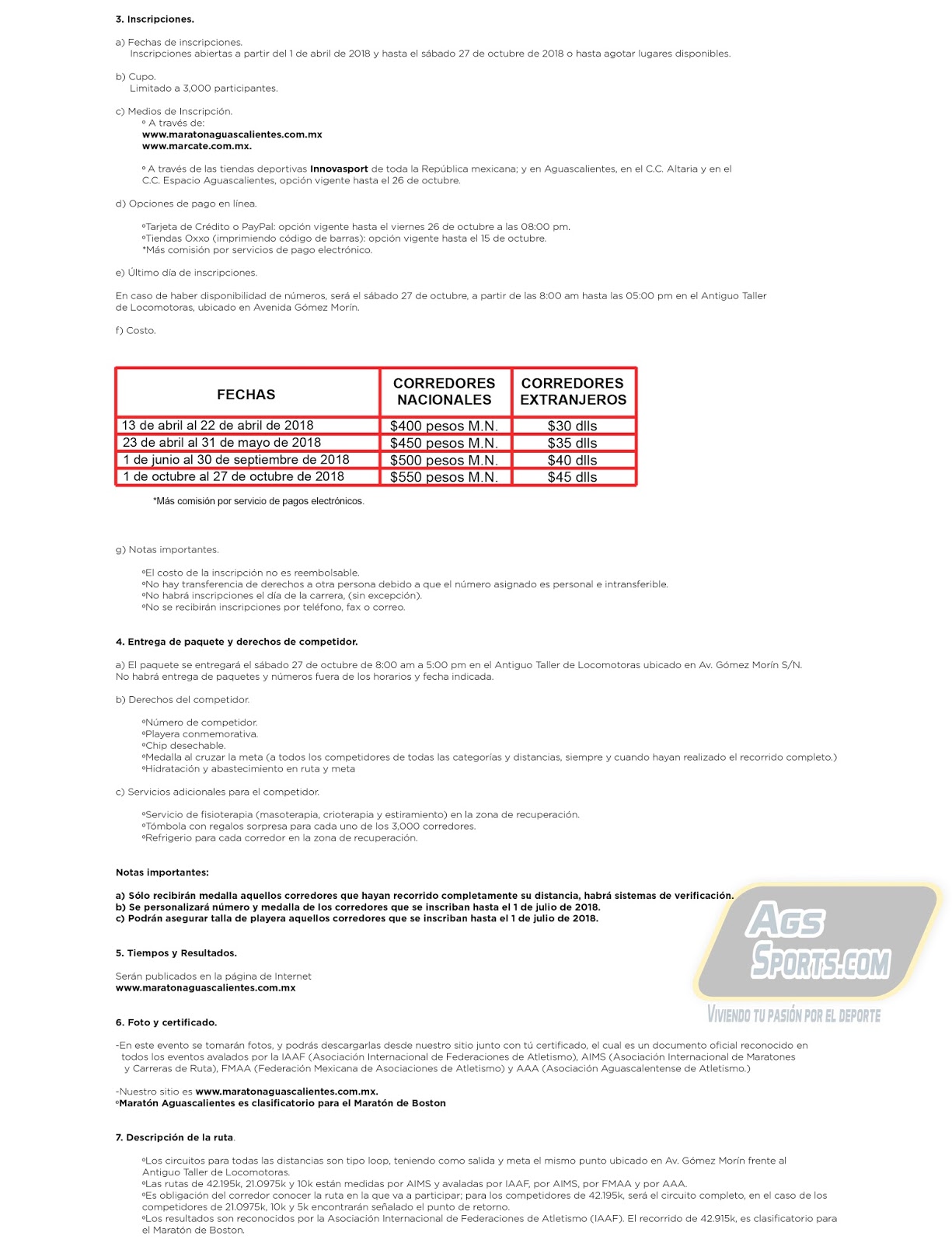 inscripciones para la séptima edición del Maratón Aguascalientes 2018, el cual