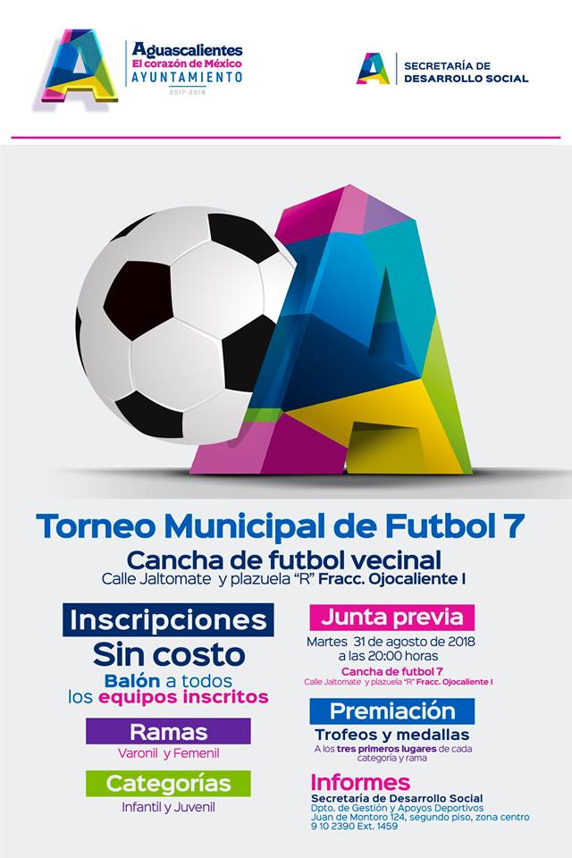 Invitan al Torneo Municipal de Futbol 7 del municipio de Aguascalientes