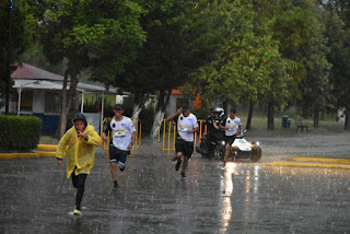 el recorrido de 5 kilómetros bajo una intensa lluvia que no impidió que se
