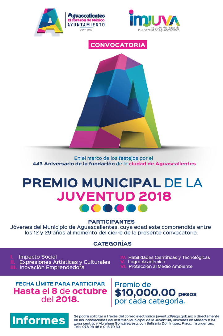 Aguascalientes convoca al “Premio Municipal de la Juventud 2018”, en el que