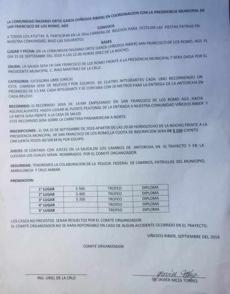 atlética de relevos de fiestas patrias en la comunidad Nazario Ortiz Garza