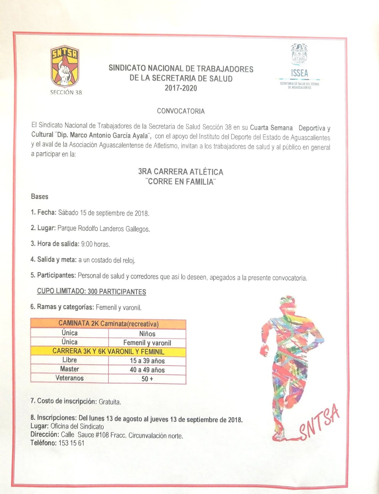 “Corre en Familia” que se tendrá este sábado 15 de septiembre.
