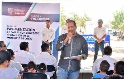 Rincón de Romos, donde puso en marcha las obras de pavimentación con concreto