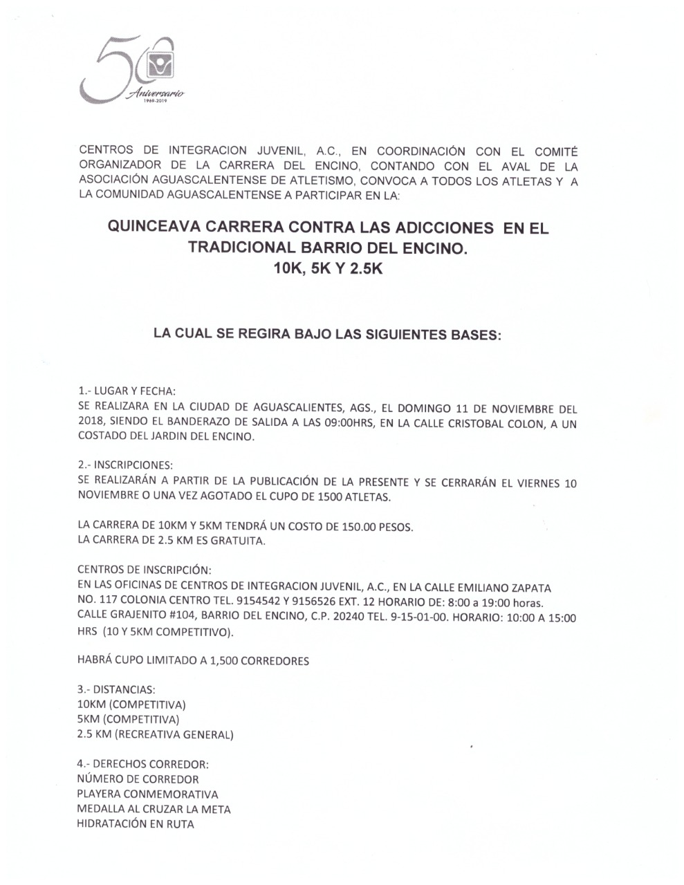 antes del banderazo de salida, o inscribirse en las oficinas del Centro de