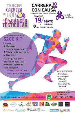contra el cáncer testicular en Aguascalientes, para este domingo 19 de mayo en
