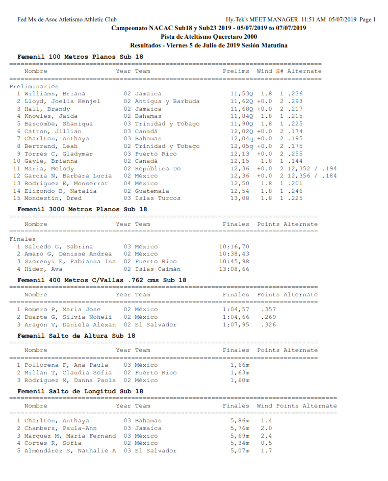 México inicia a lo grande en el NACAC 2019