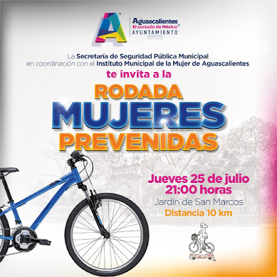 El Instituto Municipal de la Mujer de Aguascalientes (IMMA) invita a participar en la “Rodada Mujeres Prevenidas” este jueves 25 de julio, como parte de las acciones preventivas relativas al #DíaNaranja para erradicar la violencia de género.