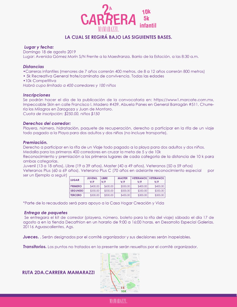 atlética Mamarazzi 2019 la cual se tendrá el domingo 18 de agosto en distancias