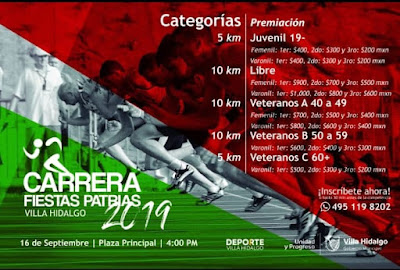 El 16 de septiembre la carrera de Fiestas Patrias en Villa Hidalgo