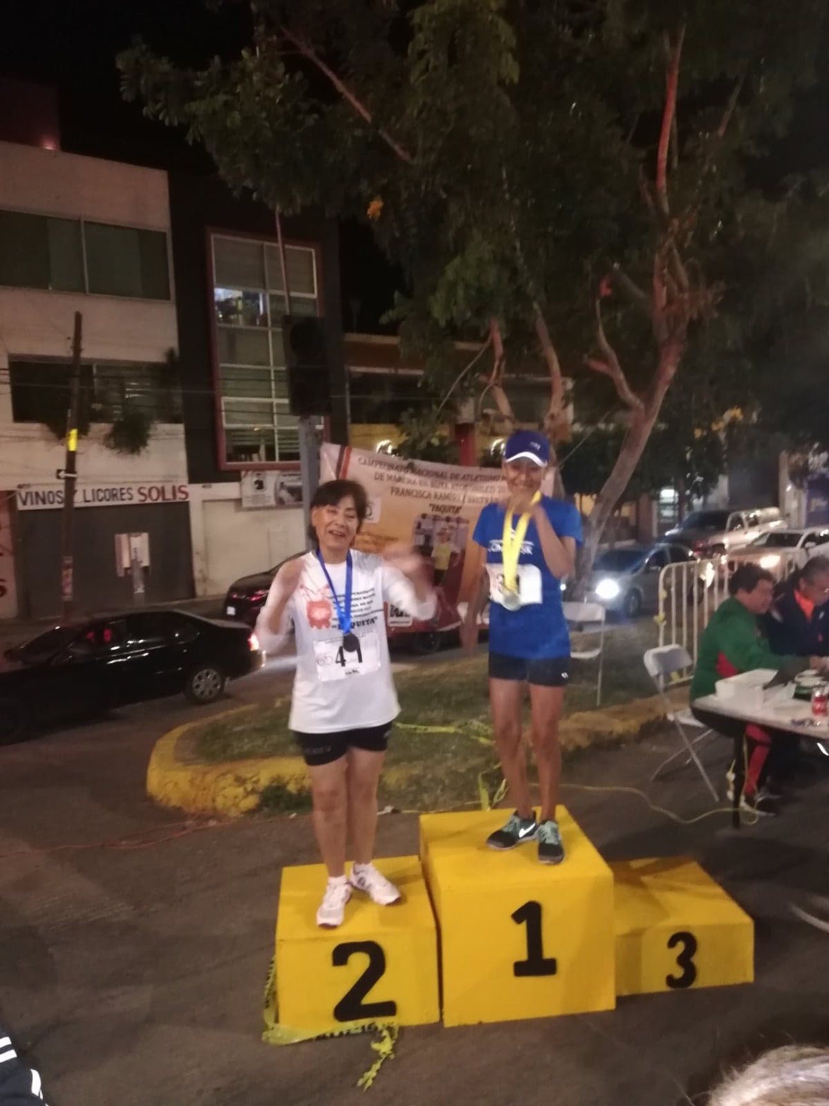 con tiempo de 37.30 minutos, en los 10 mil metros con una hora, 21 minutos y 19