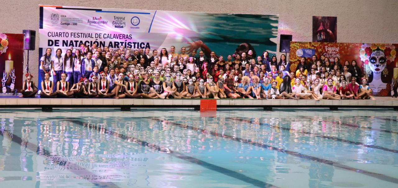 Calaveras de Natación Artística, realizaron una actuación con la temática que