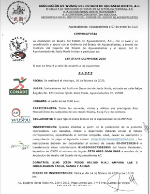 El 16 de febrero el estatal de Wushu de OlimpiAgs