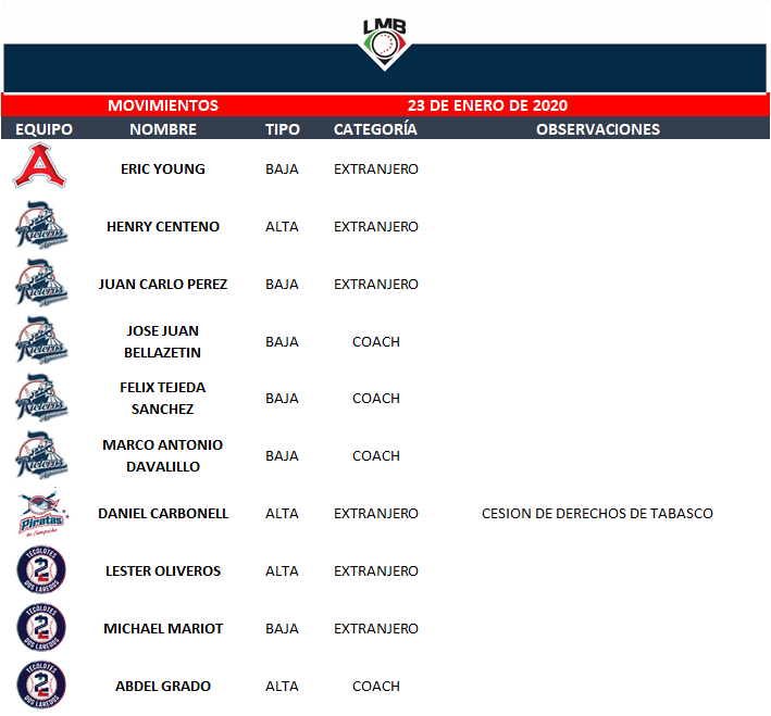 Mexicana de Béisbol, además de que tendrá la baja del outfielder dominicano