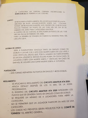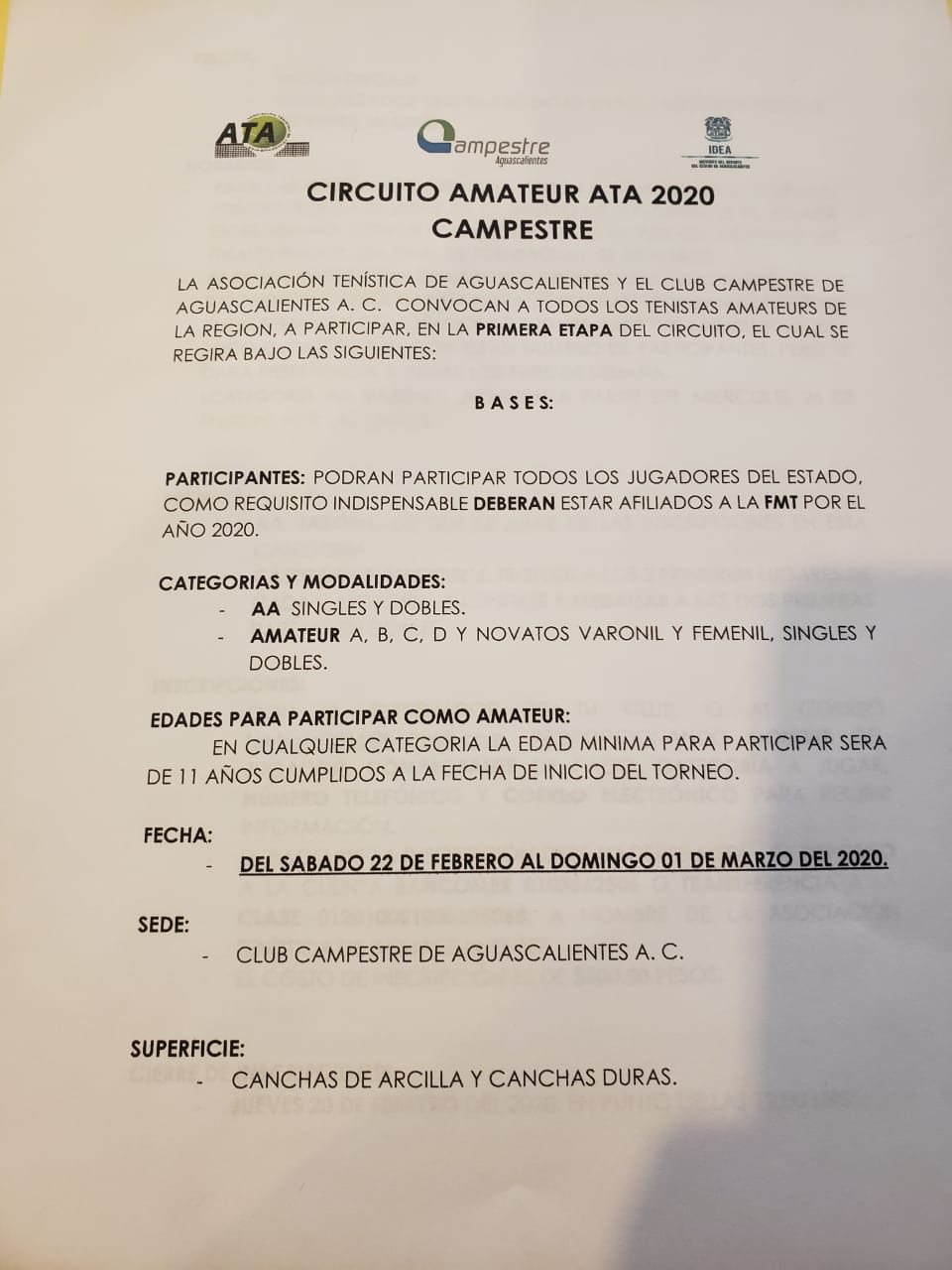 La Asociación Tenística de Aguascalientes, dio a conocer la