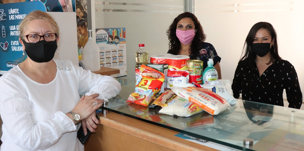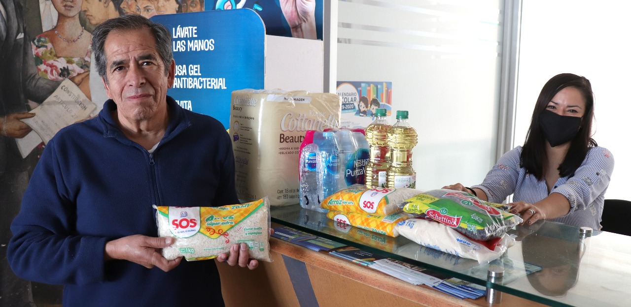 donativos de productos como: frijol, arroz, pastas, aceite, papel higiénico,