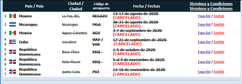 cancelar los siete eventos restantes en el calendario: tres en República Dominicana,