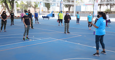 cabo una clase muestra de activación física en las canchas de baloncesto de la
