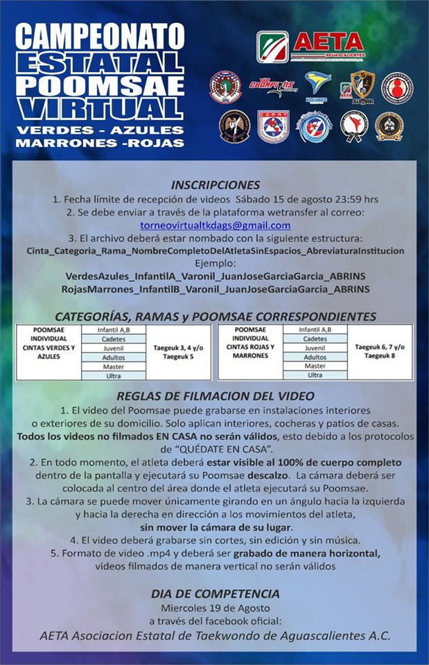 conocer la convocatoria para su primer Campeonato Estatal de Poomsae Virtual