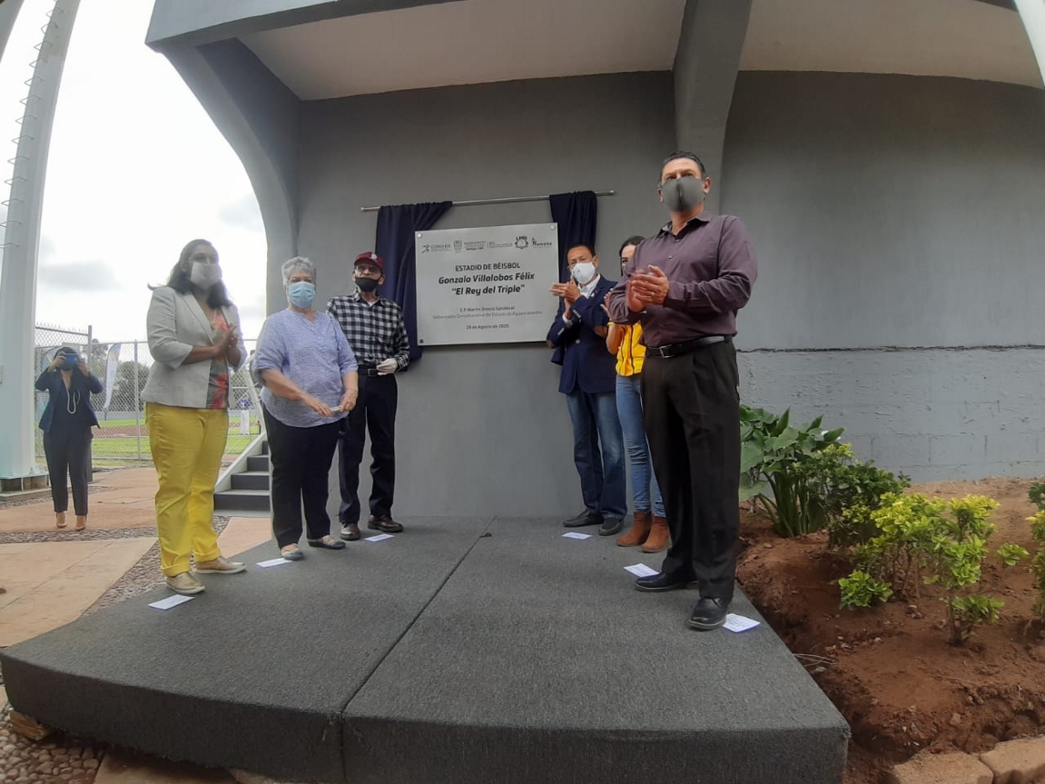 de Aguascalientes con la colocación de la placa del parque de pelota del Centro