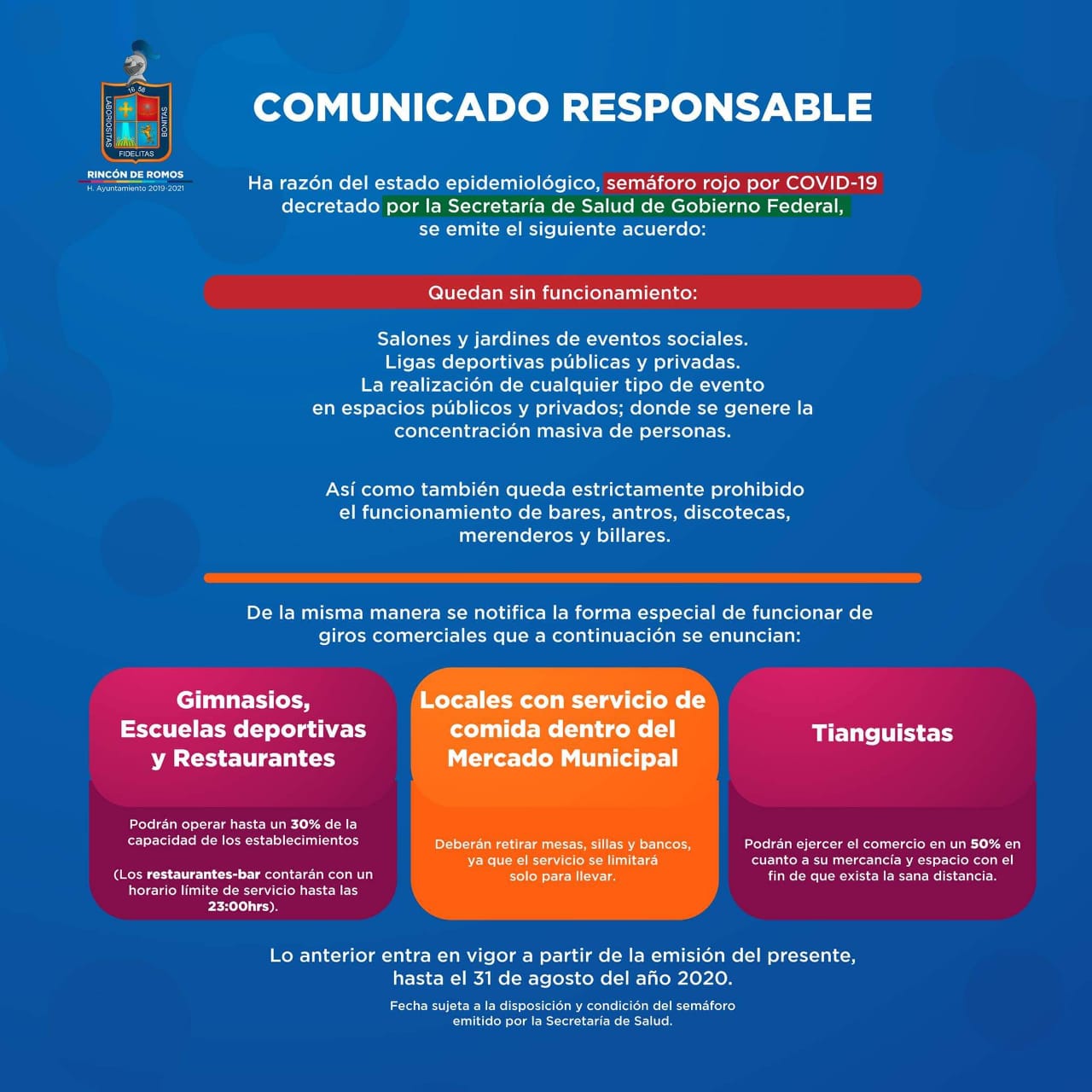 Estado, el Municipio de Rincón de Romos dio a conocer un decreto en el que se