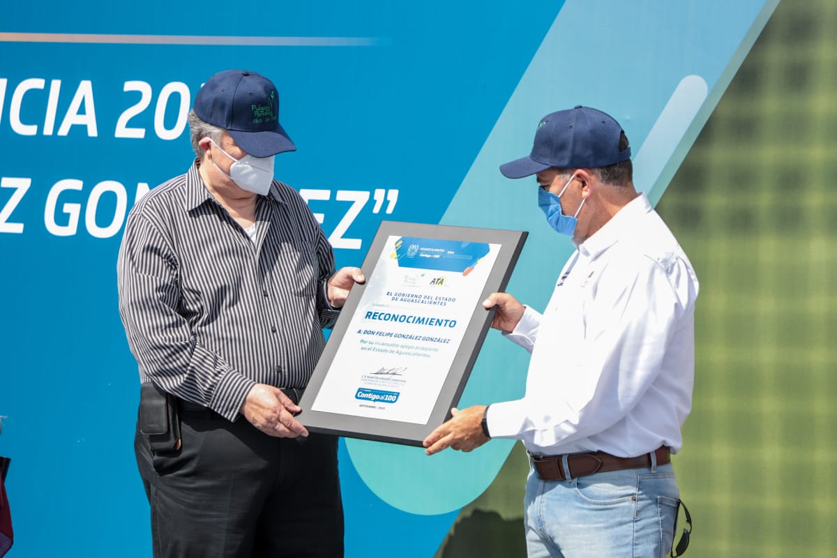 mandatario estatal un reconocimiento; posteriormente, ambos lanzaron un saque