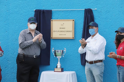González González su incansable apoyo al deporte, al develar la placa del estadio