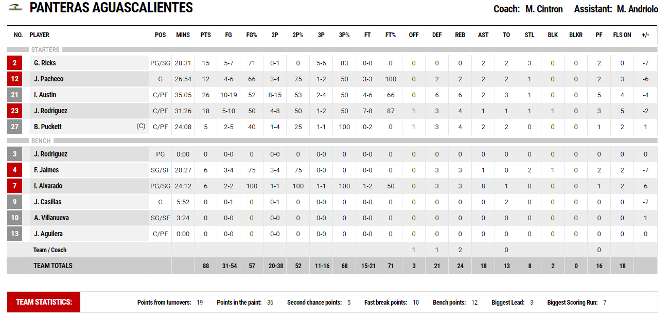 lograron derrotar a las Panteras de Aguascalientes por 88-93 en el primer juego