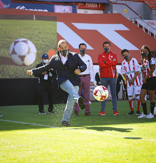 para realizar la ceremonia de inauguración de la Copa Gobernador IDEA-Necaxa,