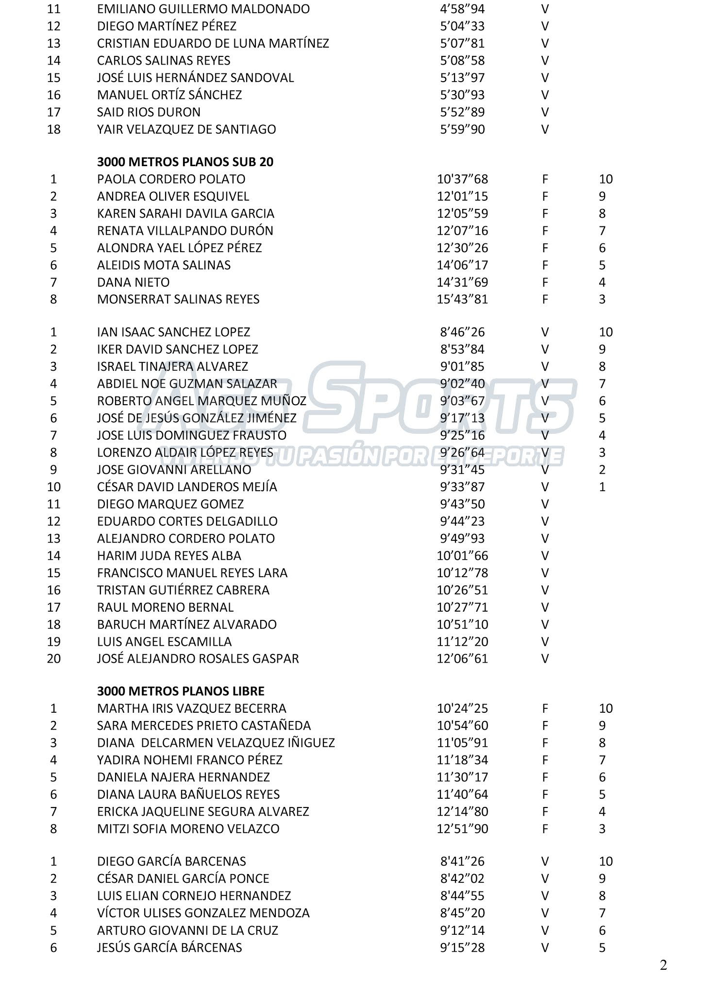 y 3 mil metros planos y una especial de 3 mil metros con marcha olímpicas todas