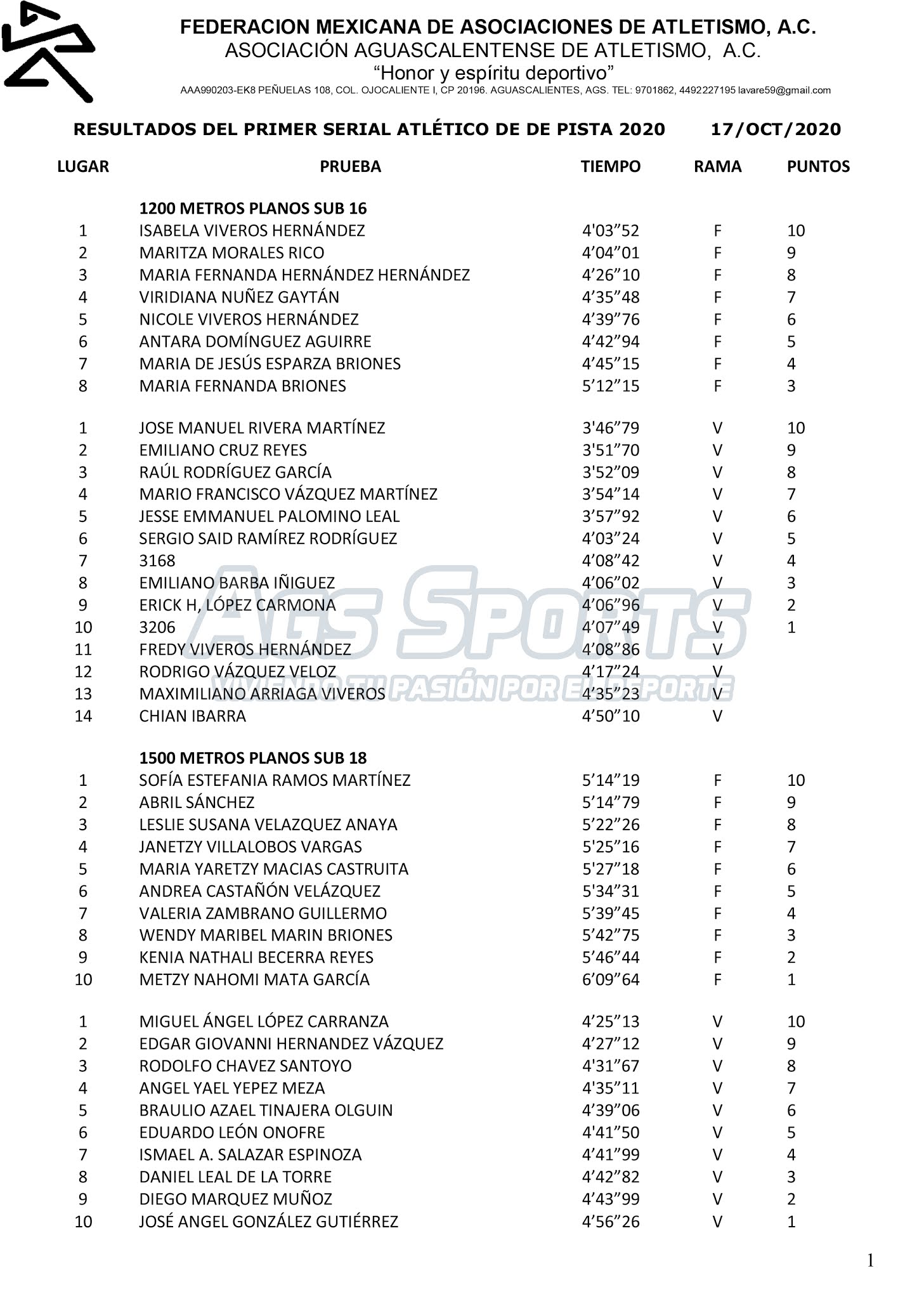 2020 que lleva a cabo la Asociación Aguascalentense de Atletismo y el Instituto
